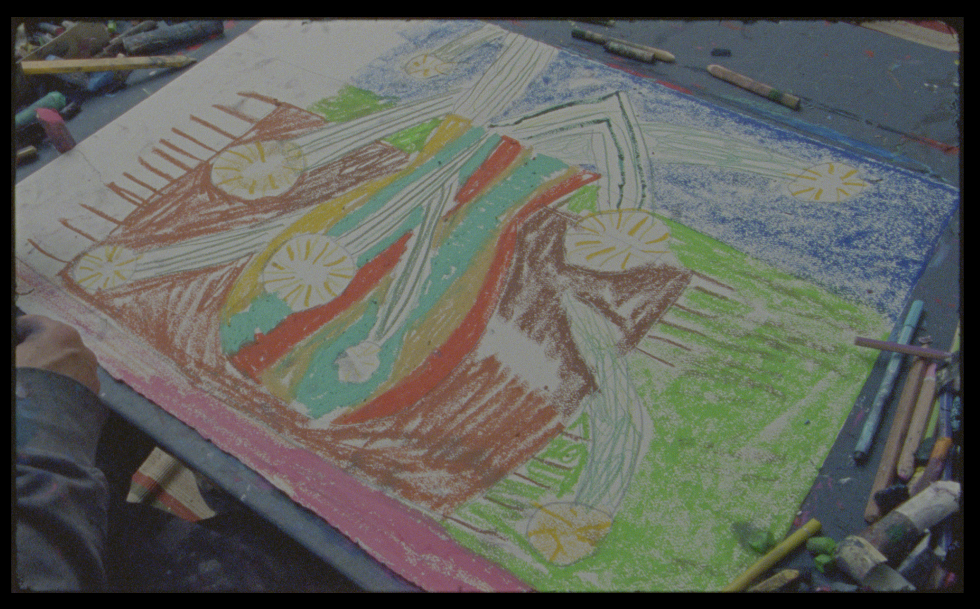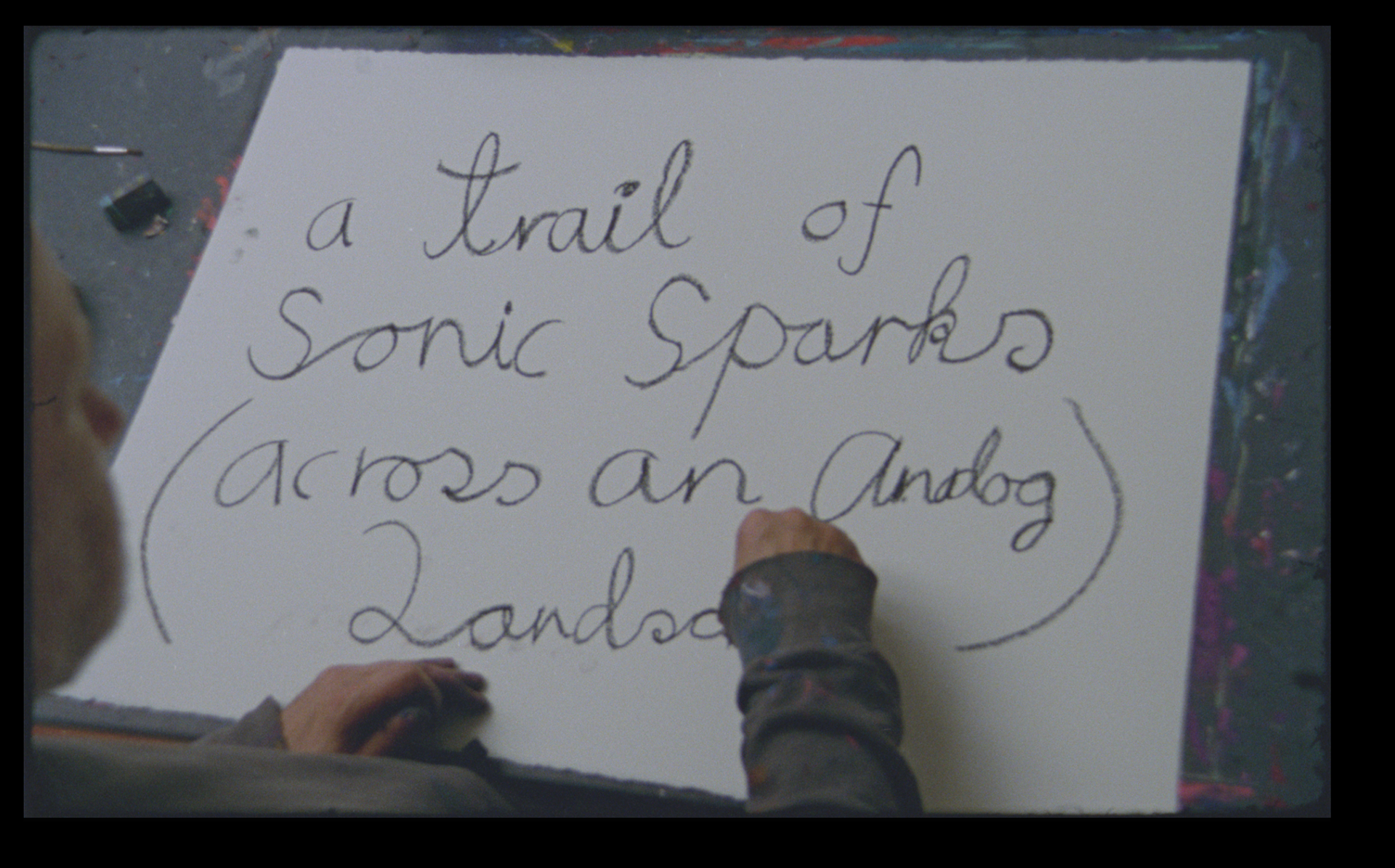 ◘. TAL R is drawing to Jakob bro's Compositions "A Trail of Sonic Sparks (Across an Analog Landscape)" We filmed on celluloid with super 16mm and every compositions has its own drawing, TAL R was drawing realtime to acompany the full Composition's lenght - the film will be projected along site Jacob bro & Co + Brussels Philharmonic real time... just great to be filming TALR, i really enjoy his art and get very inpsired by it and then in combi with celluloid film such a shooting kombo «‹∆∆∆¬∆∆ - Dir. Akoefoed